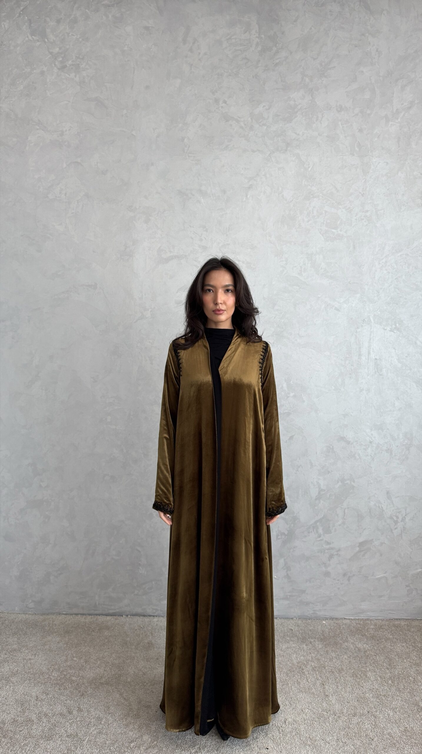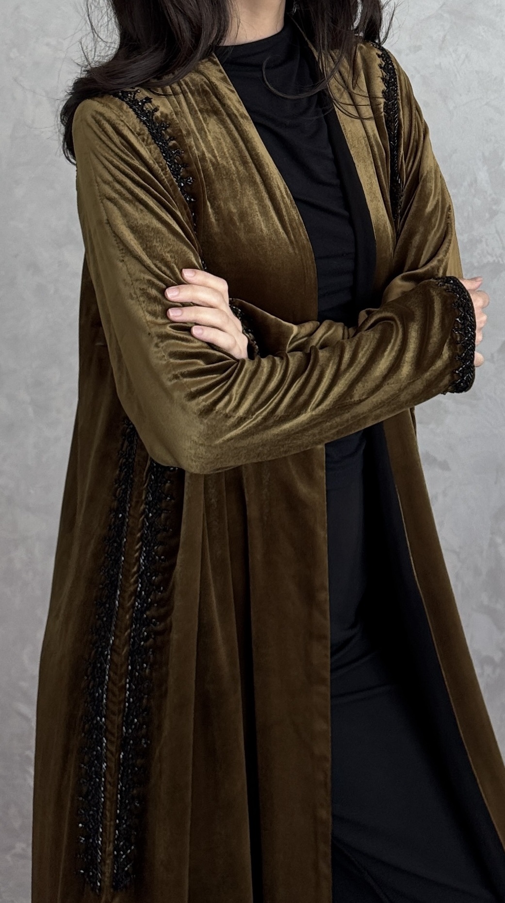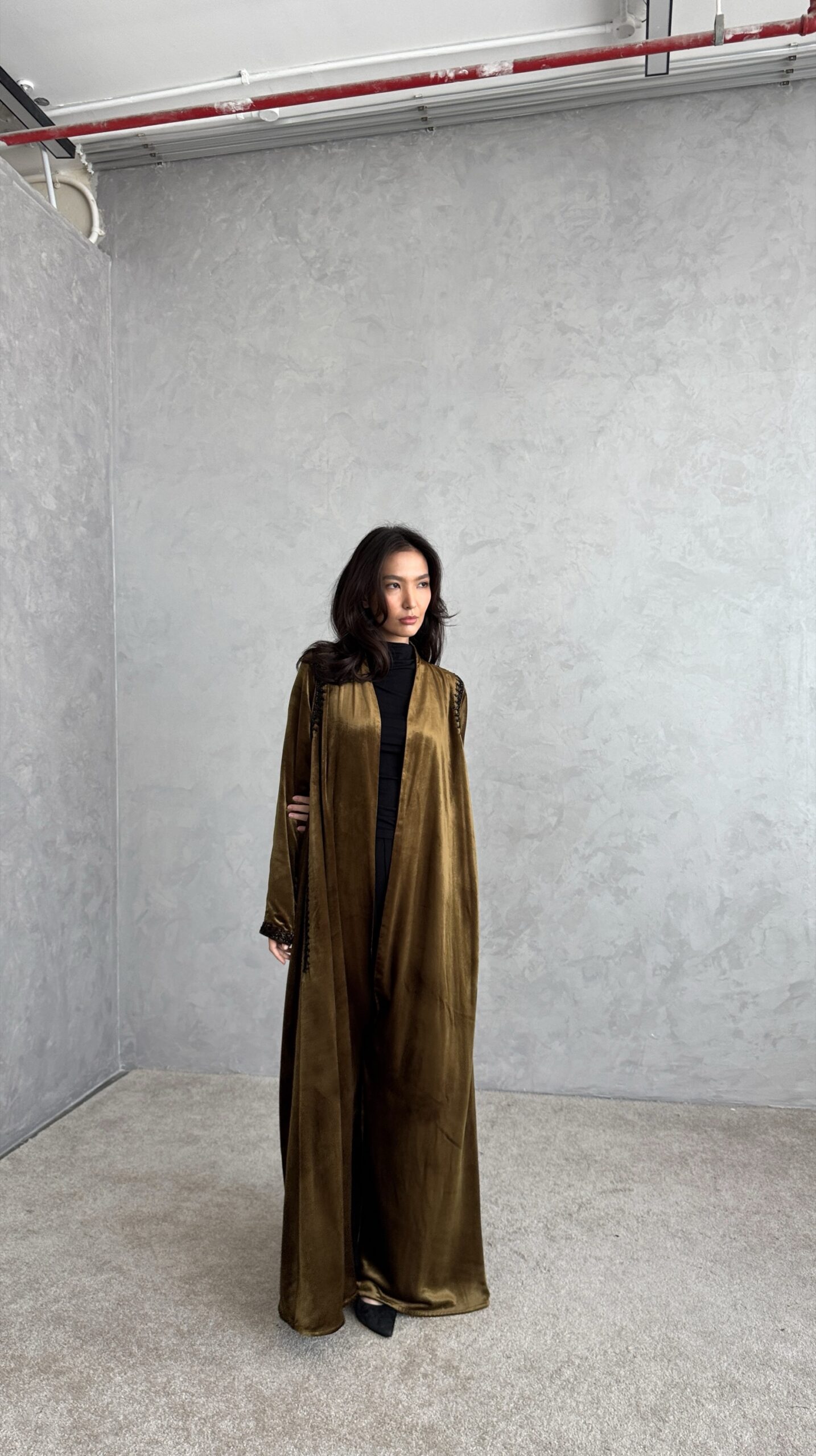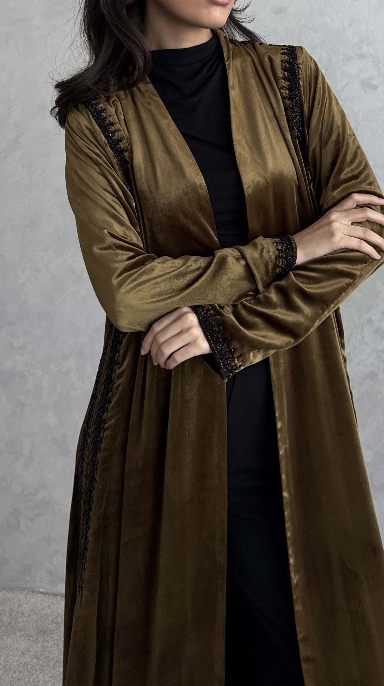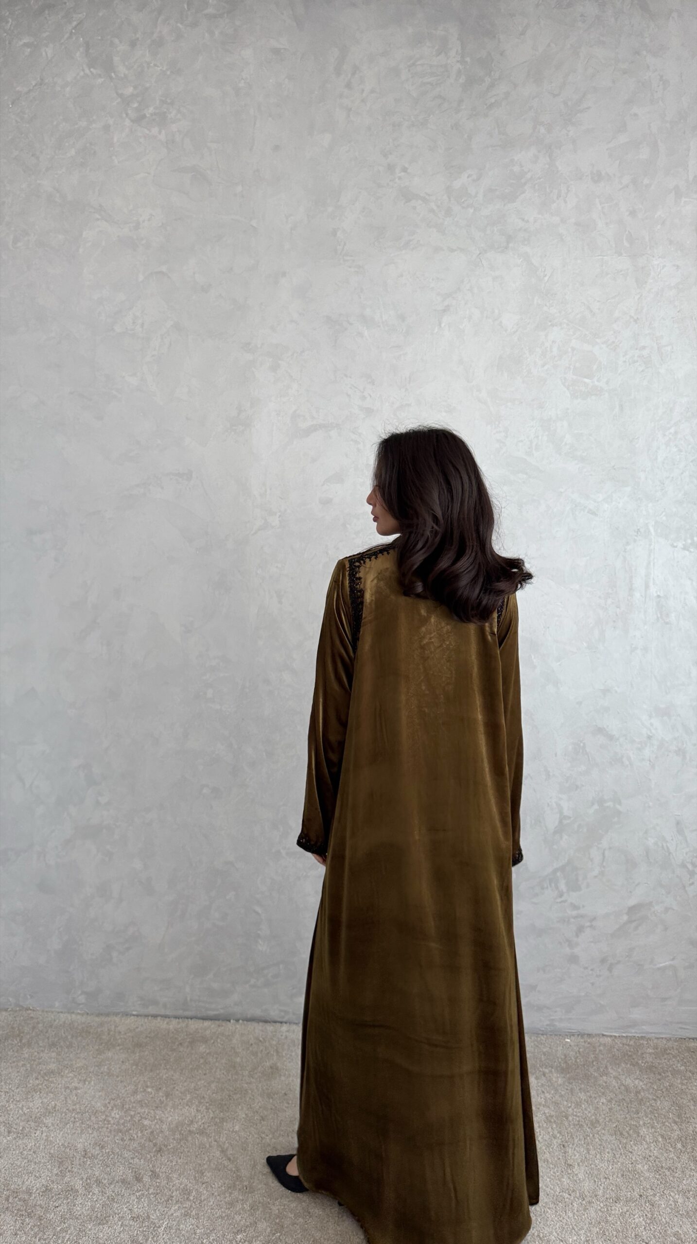 soft golden velvet, delicately lined with black chiffon, and paired with a matching black shaila