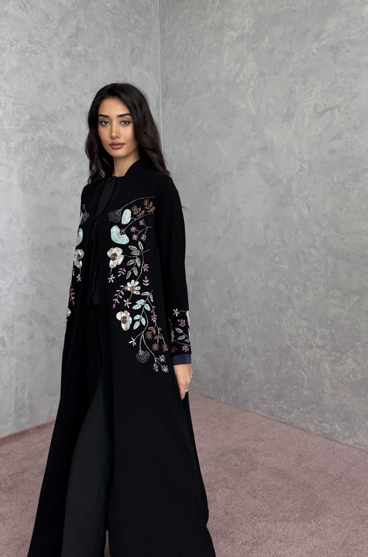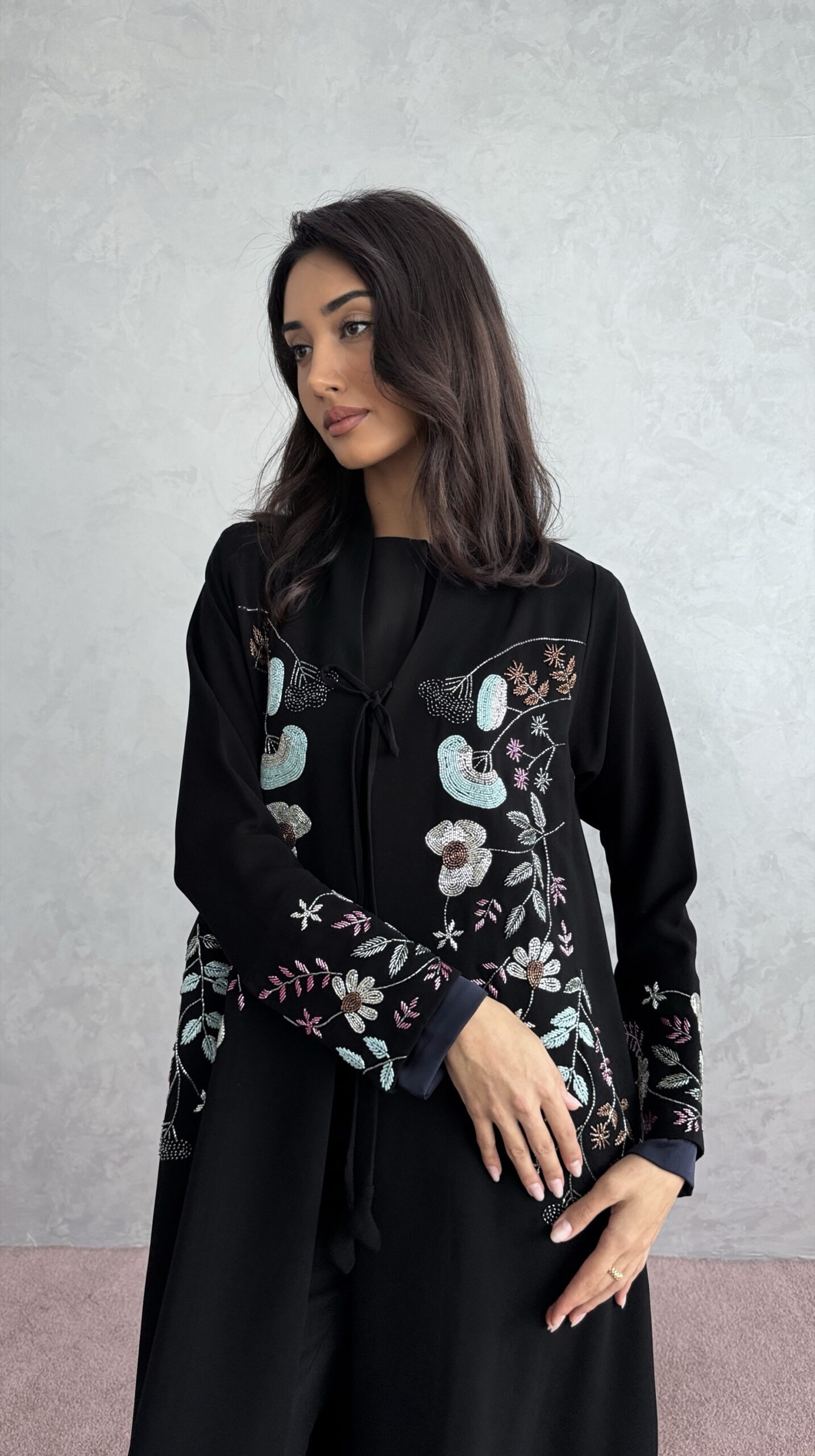 deep navy velvet finished with soft golden stitching