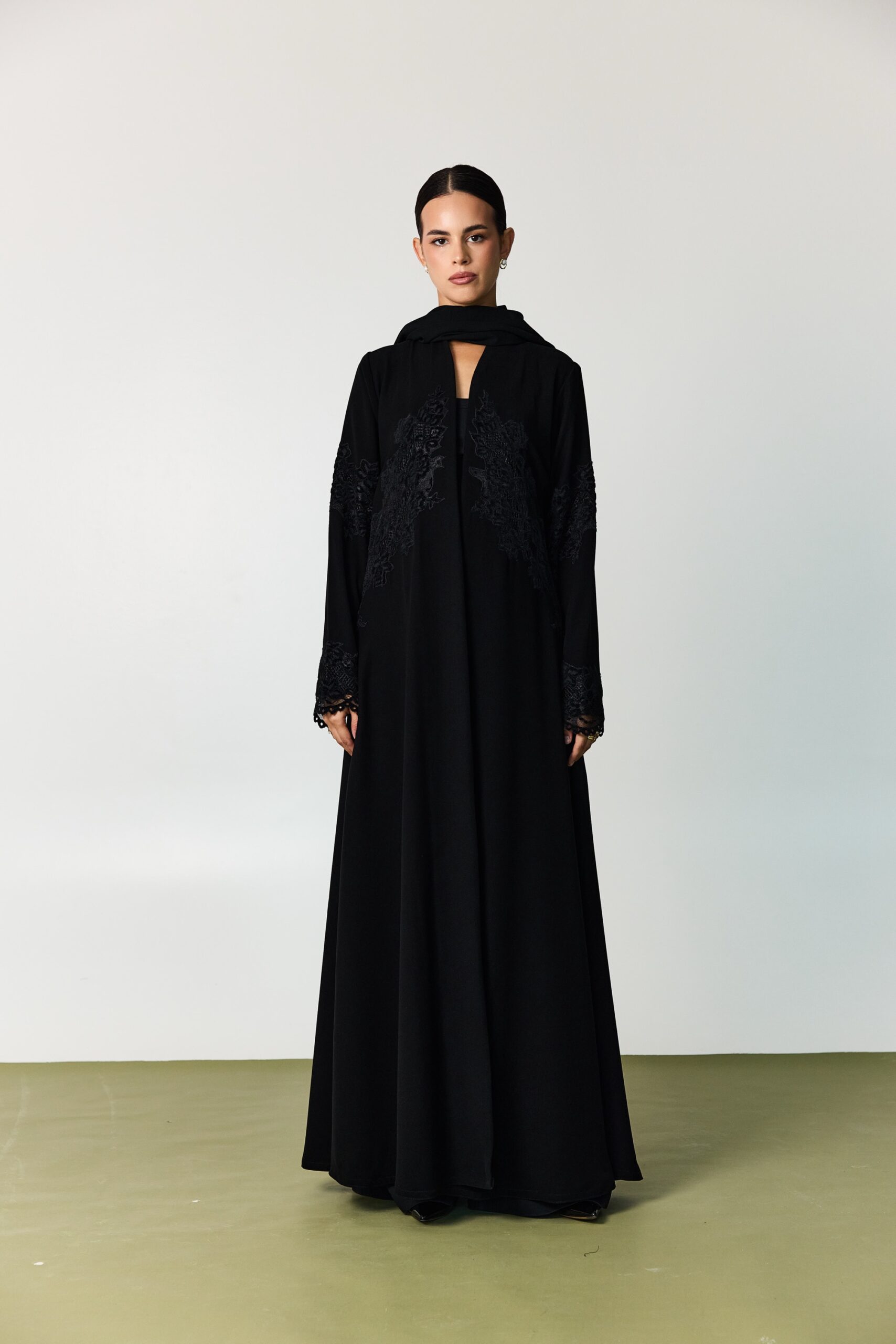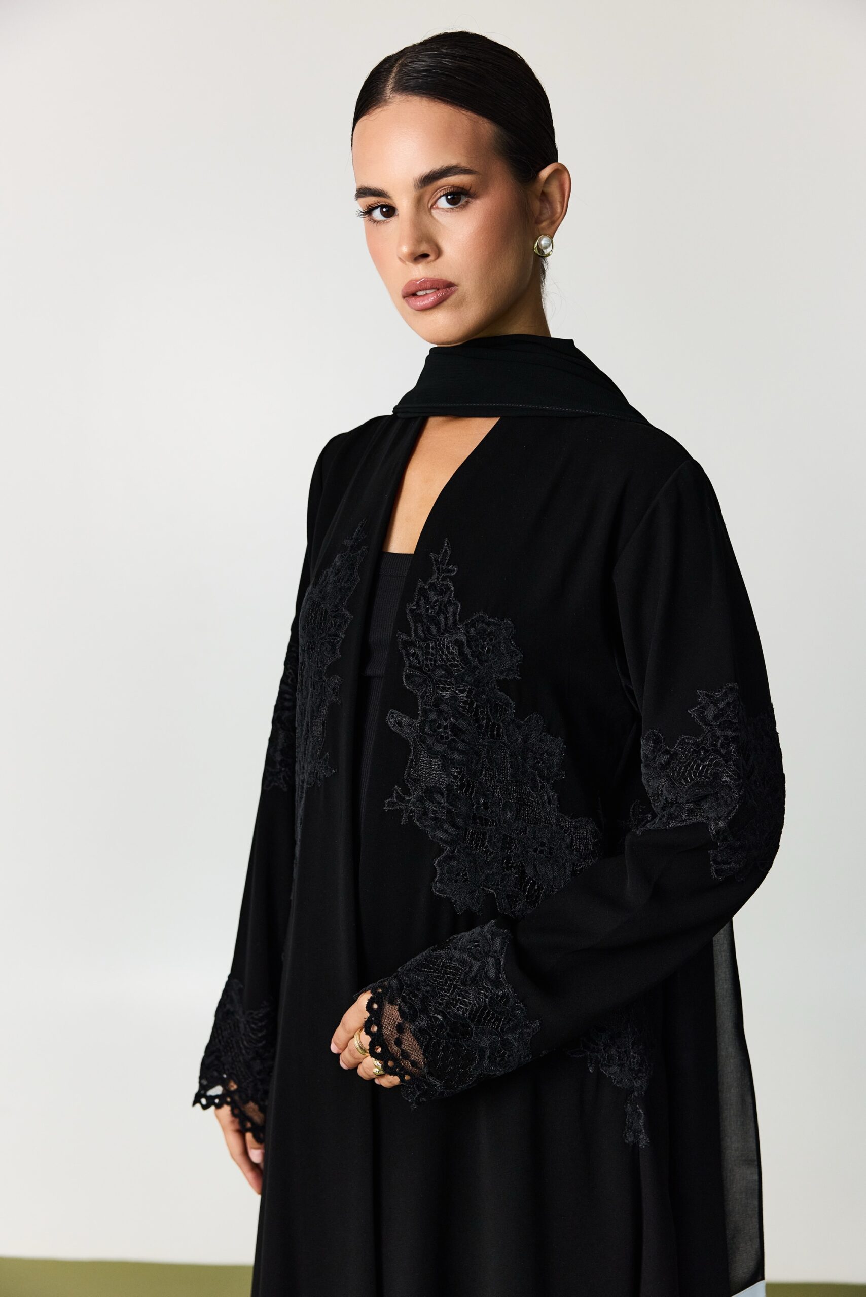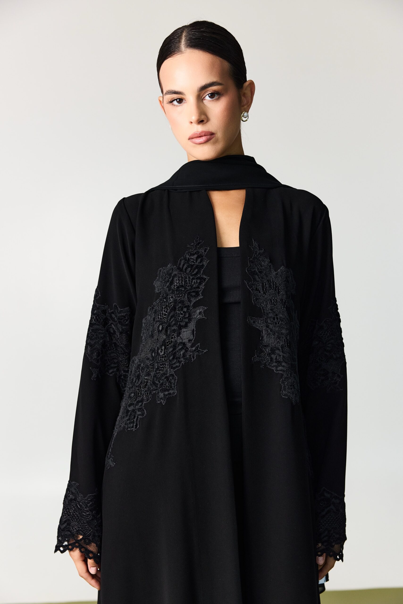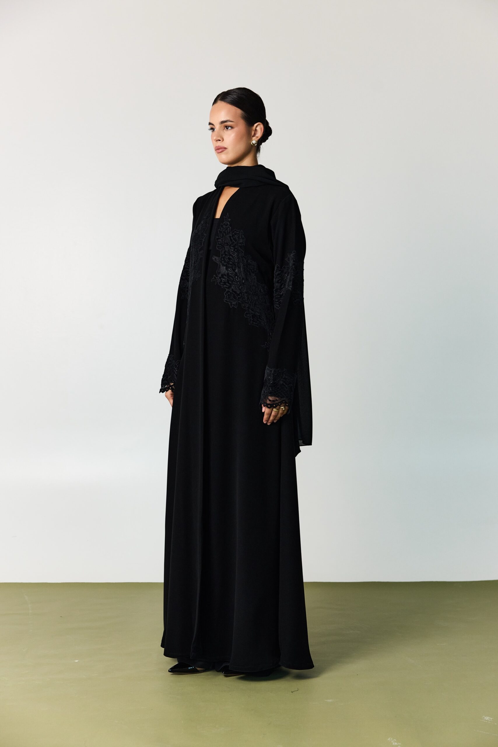 lightweight crepe fabric paired with delicate velvet lace, perfect for summer