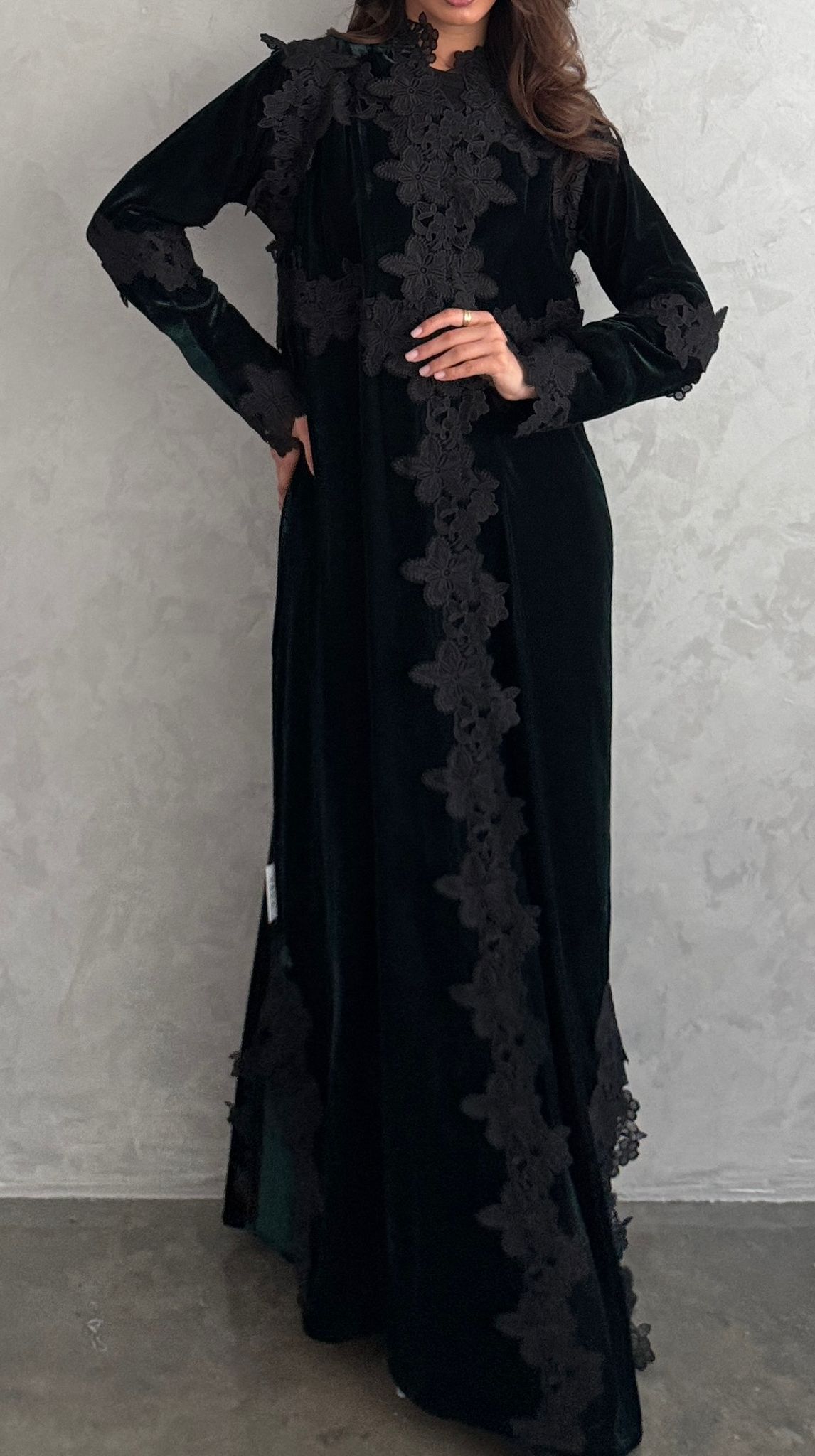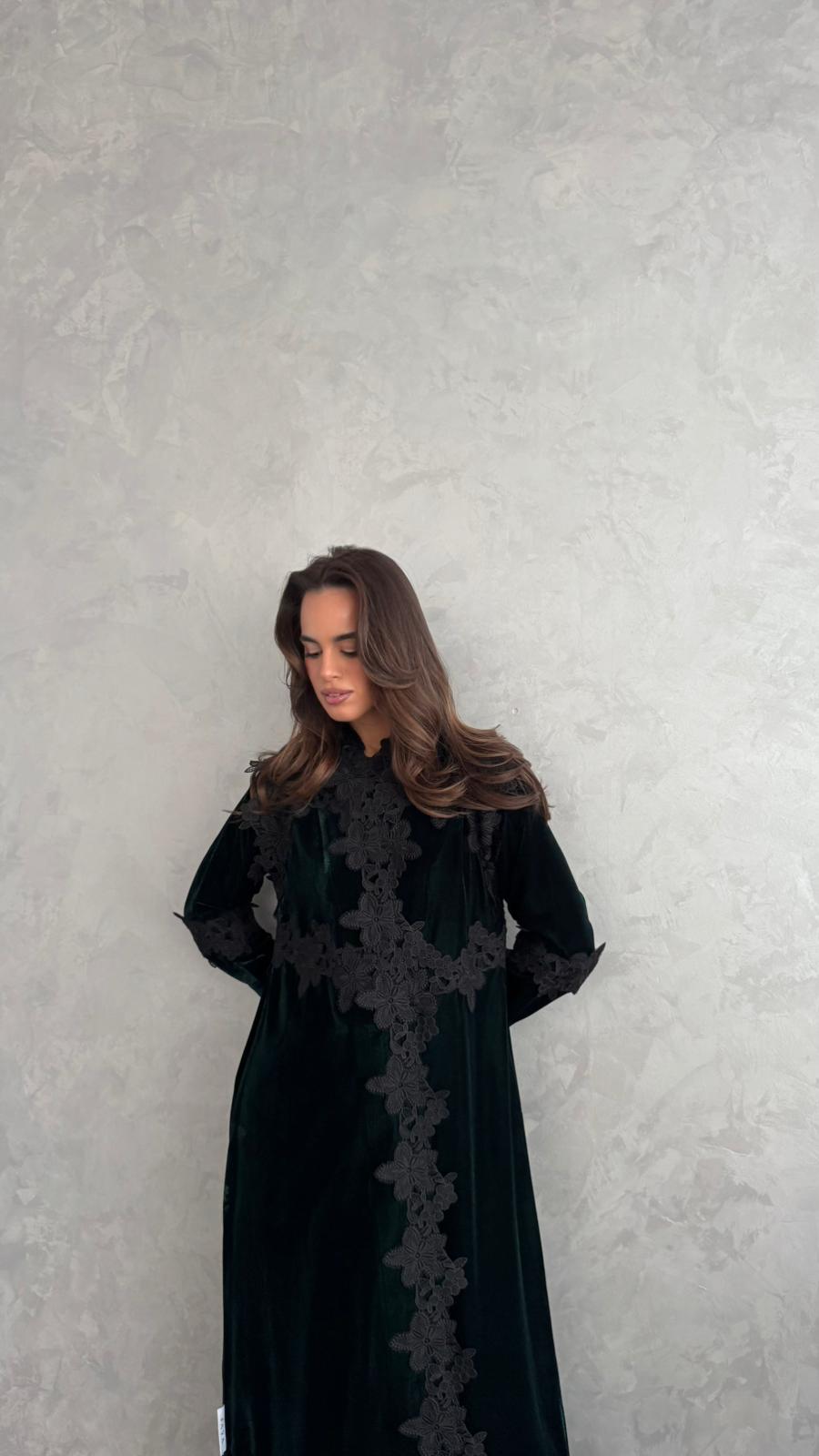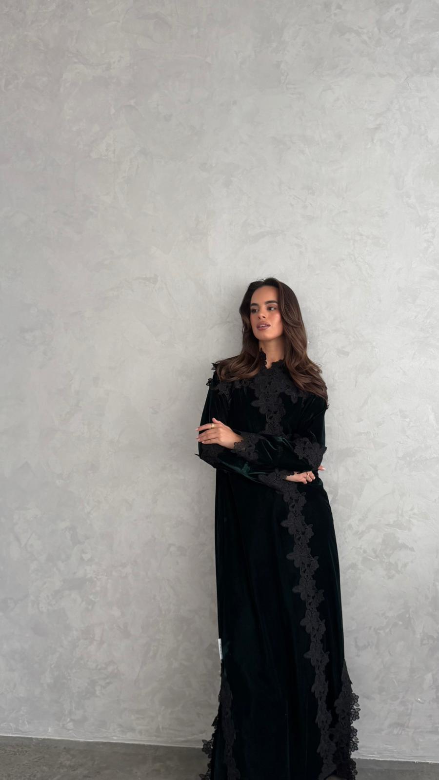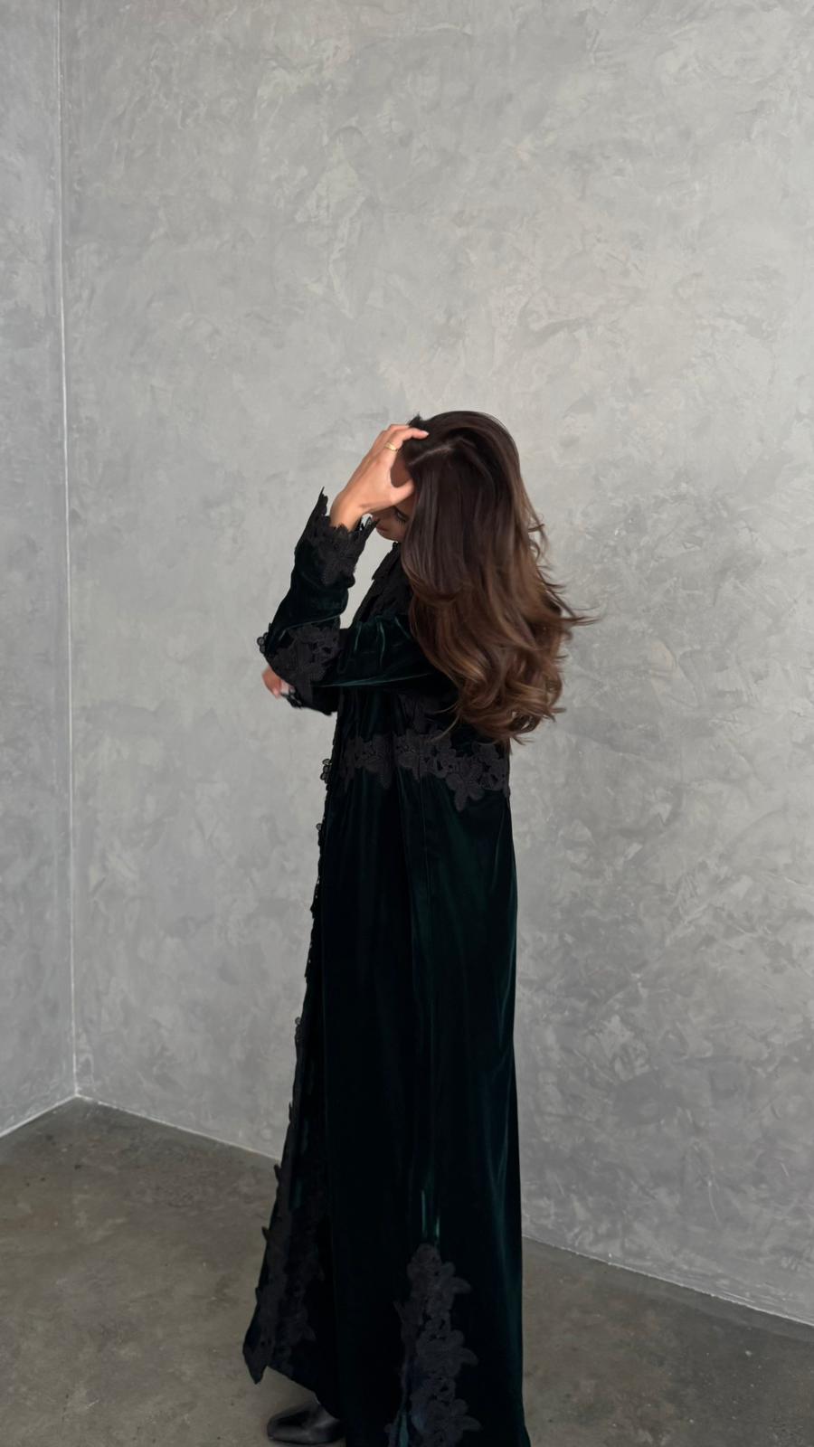 dark green velvet with black lace.